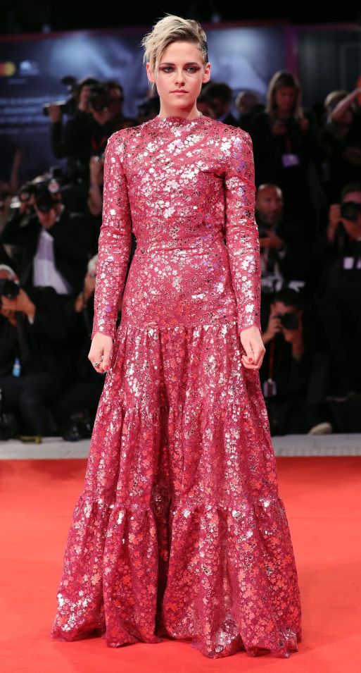 Fidelă casei de modă Chanel, Stewart și-a făcut prezența într-o rochie cu printuri florale Chanel la Festivalul de Film de la Veneția. A adăugat un makeup dramatic în jurul ochilor, într-o nuanță asemănătoare rochiei iar părul, așa cum ne-a obișnuit, l-a păstrat în stilul său caracteristic, messy style. Printre aparițiile spectaculoase, s-a remarcat cu un look foarte edgy dar în același timp, feminin.