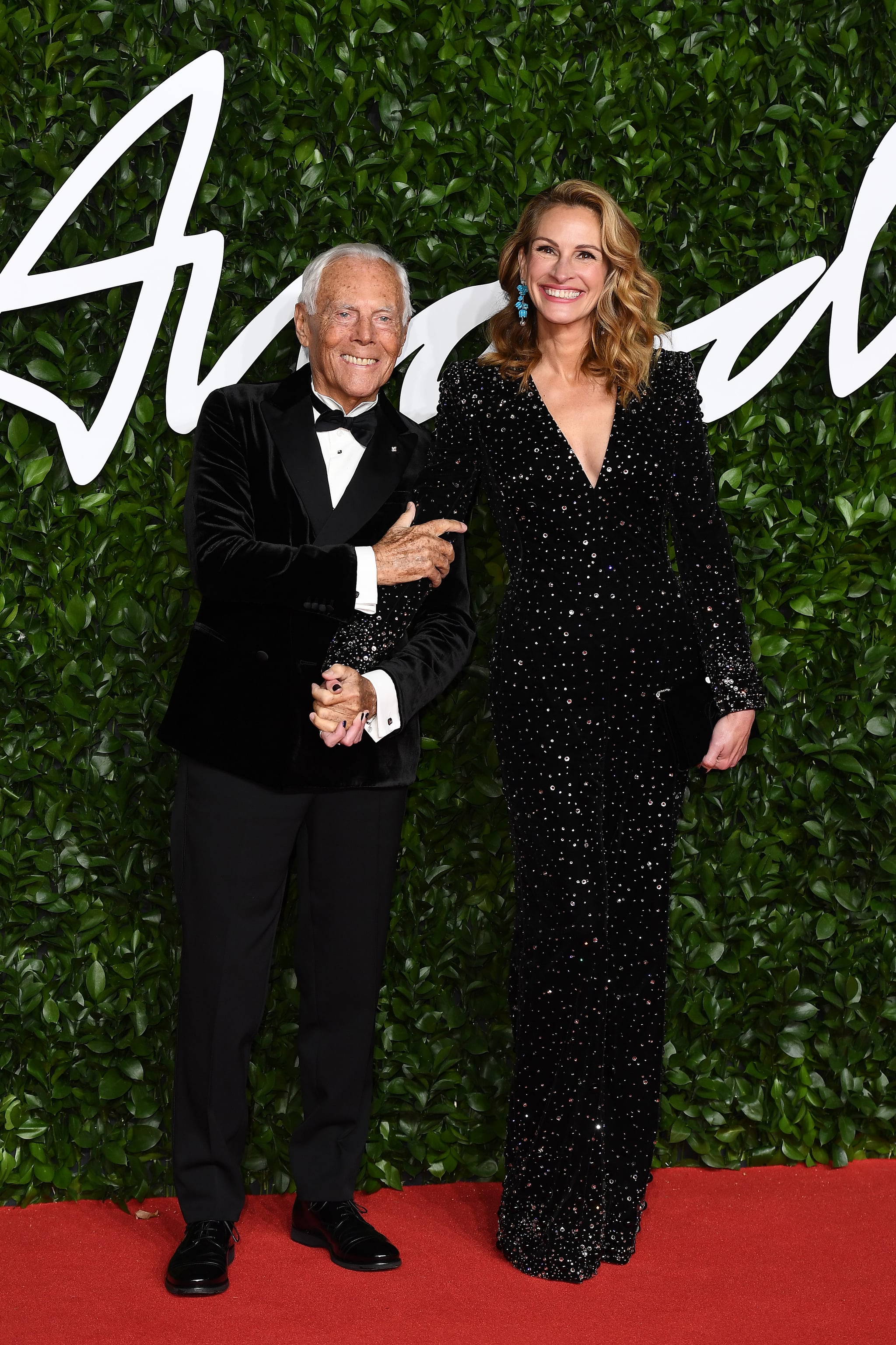 Prietenia dintre Giorgio Armani și Julia Roberts datează cu mulți ani în urmă și se poate surprinde energia și farmecul de pe covorul roșu exprimat de acest duo clasic. Domnul Giorgio Armani întotdeauna adept al liniei clasice, a prezentat o imagine impecabilă într-o ținută black tie. Loială creațiilor casei de modă Armani, Julia Roberts a afișat și de data aceasta o ținută care i s-a potrivit de minune. Salopeta cu detalii strălucitoare i-a evidențiat perfect corpul suplu și a situat-o în clasamentul celor mai bine îmbrăcate femei. Aerul retro conferit de buclele bogate și makeup-ul natural au fost elementele cheie care au stârnit scânteia de pe covorul roșu.