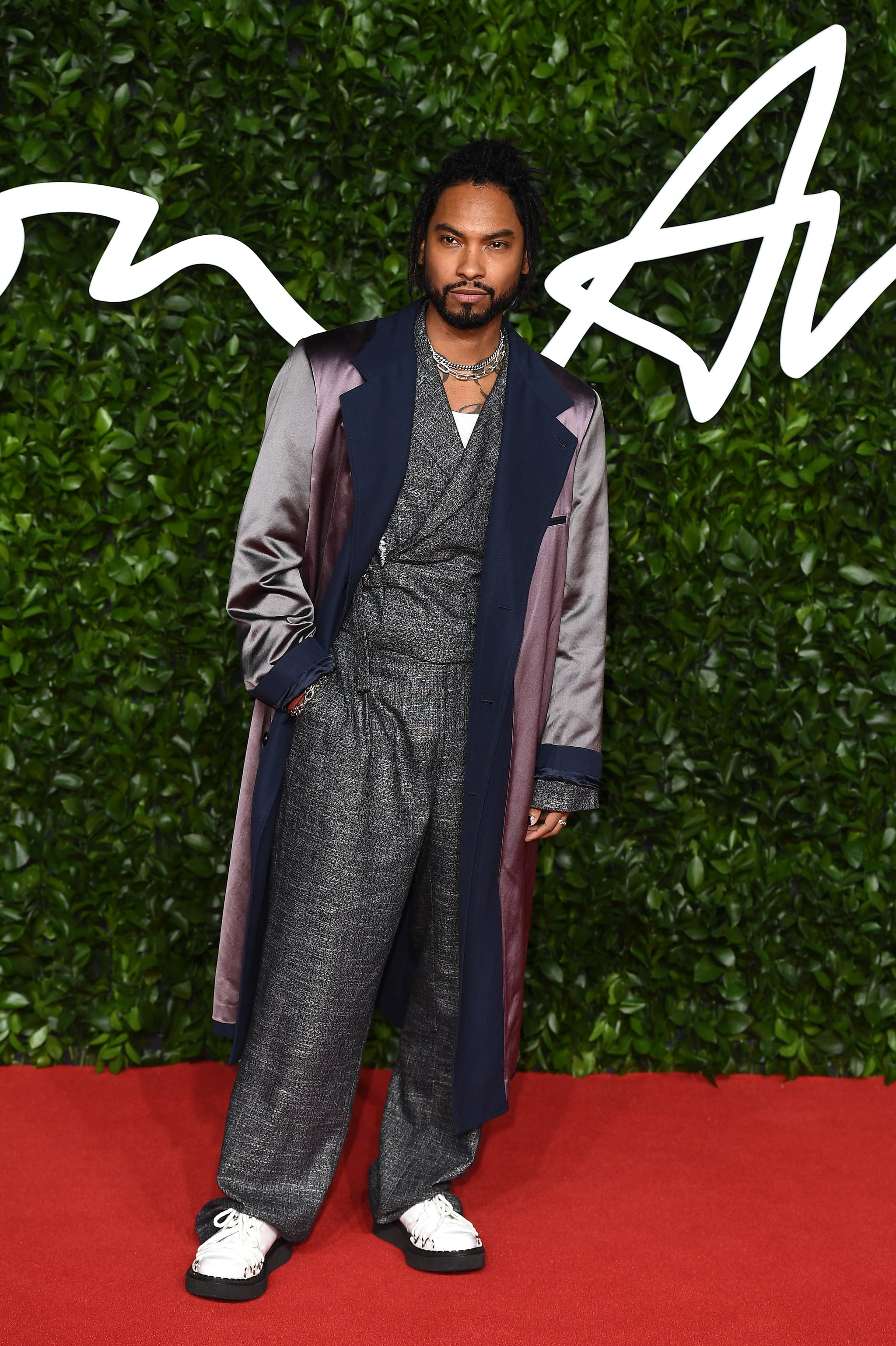 Cântărețul de muzică R&B a afișat o apariție excentrică. Curajul și atitudinea reprezintă atuurile pe care Miguel se bazează atunci când își expune ținutele. Costumul său cu accente supradimensionate a fost completat cu un pardesiu foarte elegant. Analizând materialul fin al pardesiului, putin probabil ca acesta sa îl fi protejat de frig, însă cu siguranță a realizat un statement pe covorul roșu. A prezentat o coafură formată din dreduri și o barbă conturată și îngrijită.