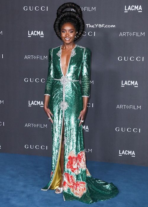 Apariția actriței a fost una aparte. Ținuta sa cu inspirații metalice a contribuit la veselia debordantă pe care a afișat-o pe covorul roșu. Coafura sa electrizantă a fost cea care ne-a atras privirile cel mai mult. Codițele afro în diferite nuanțe îndrăznețe au fost împreunate într-un updo centrat în creștetul capului, completându-i întreg look-ul.