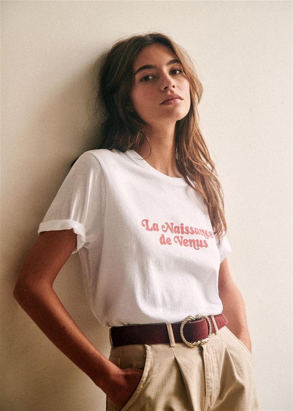 Brandul parizian, Sézane, și-a dezvăluit noua colecție dedicată lunii de solidaritate, denumită ”Pink October”. Pintre noile piese, se regăsește tricoul bej cu inscripția ”La naissance de Venus” (Nașterea lui Venus), unul dintre cele mai emblematice tablouri nud din istorie. Pentru 45 de euro, toate profituril obținute din tricouri vor fi donate Institutului Gustave Roussy, un centru european de cercetare susținut de Sézane, pentru al doilea an consecutiv. Pe 1 octombrie, când colecția a fost lansată online, au fost donate 10 % din profiturile din acea zi. Tricoul de bumbac organic ” La naissance de Vénus” este disponibil în mărimea XS- XL pentru 45 de euro pe Sezane.fr