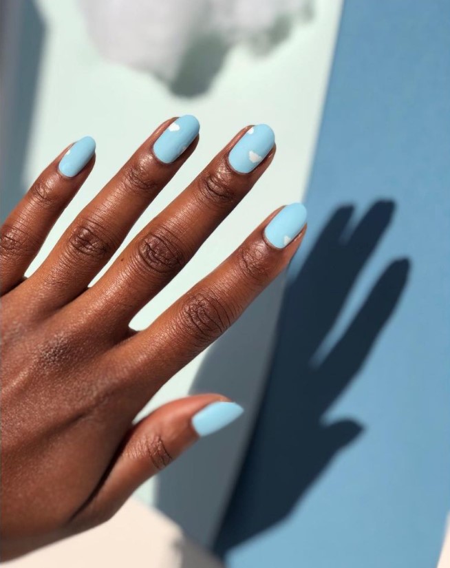 Chiar dacă cerul de la începutul primăverii a fost mai mult acoperit de nori, noi putem să îl înseninăm cu o manichiură care imită cerul albastru. În cazul în care ți se pare că este o manichiură simplă, poți oricând picta și niște nori albi pufoși pe suprafața unghiei.