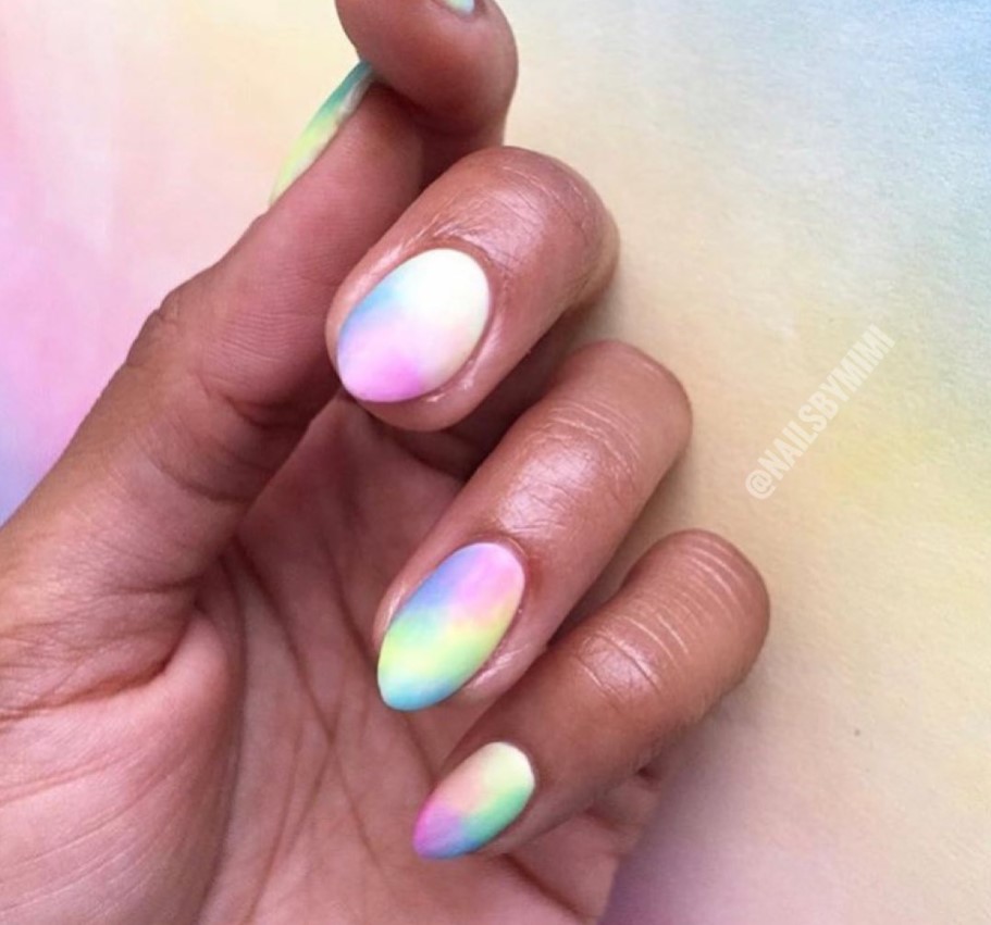Modelul tie-dye este în continuare în trend, iar acum se poartă și pe unghii. Și cum nuanțele pastelate sunt la fel de inovatoare pentru primăvară ca florile, o astfel de manichiură este un mod distractiv de a folosi aceste culori.