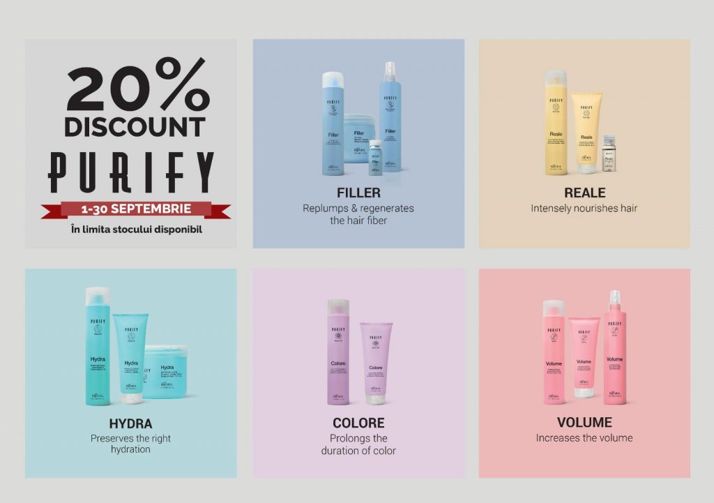 Produsele profesionale Purify by @kaaral_official – gama care raspunde tuturor nevoilor parului tau: hidratare, volum, nutritie intensa, protectia culorii si regenerare – sunt acum disponibile cu 20% reducere, intre 1–30 septembrie.