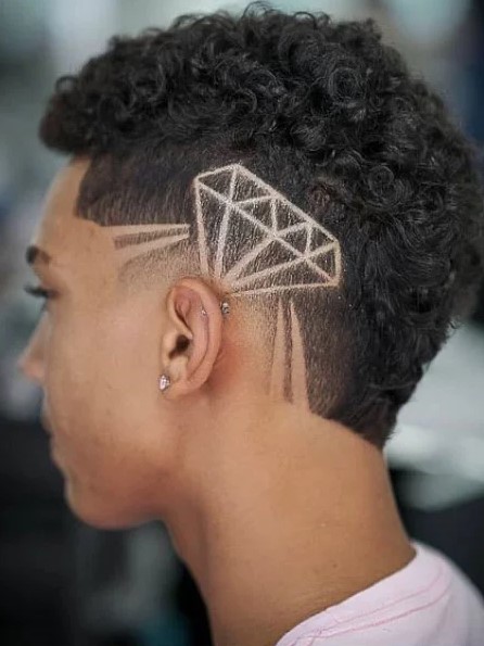 Pentru băieții care își cunosc valoarea, un design de păr diamantat este o alegere excelentă. Diamantele reprezintă succesul, bogăția și raritatea. În plus, forma lor geometrică face din aceste pietre un design simplu, recunoscut și eficient al părului, mai ales dacă dorești și o linie de păr ascuțită și curată. Pune-l pe frizer să creeze o formă de diamant, apoi adaugă fațete și raze de lumină pentru un impact suplimentar.