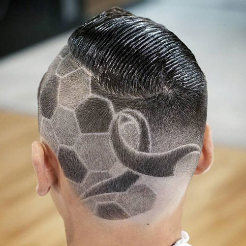 Pentru băieții cu adevărat aventuroși, o tunsoare grozavă este un design abstract complex. Dă frâu liber imaginației tale și lasă–ți frizerul să creeze un aspect îndrăzneț, proaspăt și unic pentru părul tău. Un design abstract complex arată chiar mai bine dacă îți vopsești părul într-o culoare sălbatică, precum galben neon, verde sau roșu.